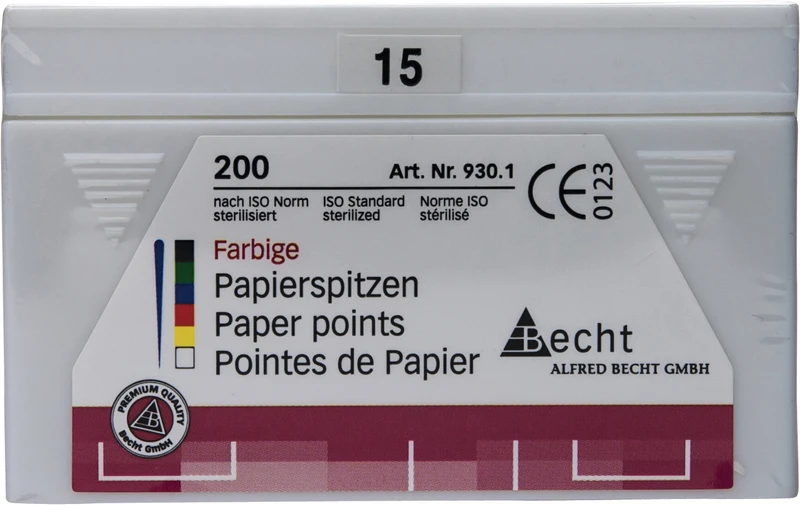 Extrem saugfähig und faserfrei überzeugen die Papierspitzen mit optimaler Festigkeit und glatter Oberfläche. Hergestellt nach ISO-Norm mit 28 mm Länge. Folienversiegelung und Gammasterilisation erfüllen die strengen Anforderungen der Behandlungshygiene.