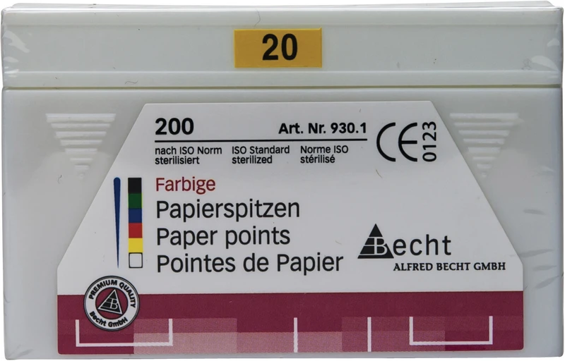 Extrem saugfähig und faserfrei überzeugen die Papierspitzen mit optimaler Festigkeit und glatter Oberfläche. Hergestellt nach ISO-Norm mit 28 mm Länge. Folienversiegelung und Gammasterilisation erfüllen die strengen Anforderungen der Behandlungshygiene.