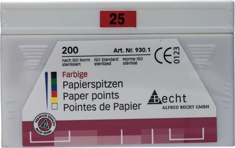 Extrem saugfähig und faserfrei überzeugen die Papierspitzen mit optimaler Festigkeit und glatter Oberfläche. Hergestellt nach ISO-Norm mit 28 mm Länge. Folienversiegelung und Gammasterilisation erfüllen die strengen Anforderungen der Behandlungshygiene.