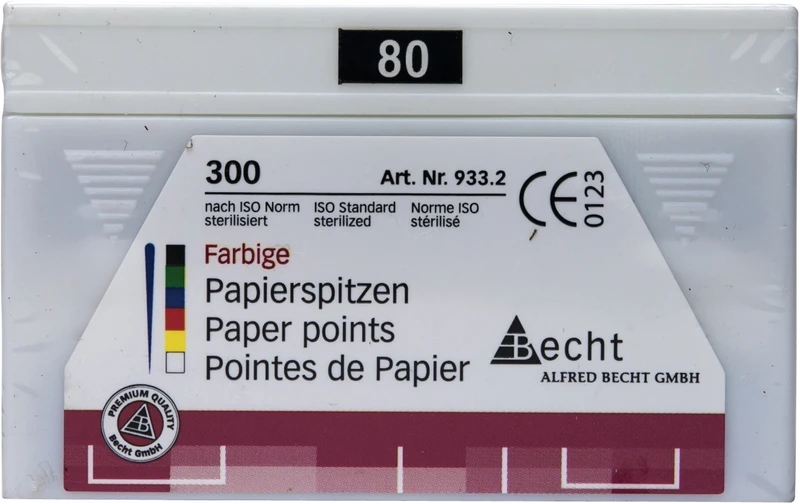 Extrem saugfähig und faserfrei überzeugen die Papierspitzen mit optimaler Festigkeit und glatter Oberfläche. Hergestellt nach ISO-Norm mit 28 mm Länge. Folienversiegelung und Gammasterilisation erfüllen die strengen Anforderungen der Behandlungshygiene.