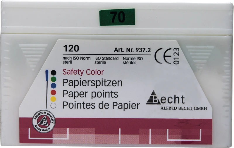 Extrem saugfähig und faserfrei überzeugen die Papierspitzen mit optimaler Festigkeit und glatter Oberfläche. Hergestellt nach ISO-Norm mit 28 mm Länge. Folienversiegelung und Gammasterilisation erfüllen die strengen Anforderungen der Behandlungshygiene.