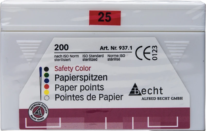 Extrem saugfähig und faserfrei überzeugen die Papierspitzen mit optimaler Festigkeit und glatter Oberfläche. Hergestellt nach ISO-Norm mit 28 mm Länge. Folienversiegelung und Gammasterilisation erfüllen die strengen Anforderungen der Behandlungshygiene.
