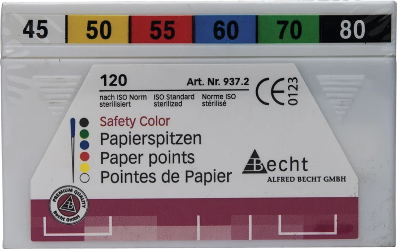 Extrem saugfähig und faserfrei überzeugen die Papierspitzen mit optimaler Festigkeit und glatter Oberfläche. Hergestellt nach ISO-Norm mit 28 mm Länge. Folienversiegelung und Gammasterilisation erfüllen die strengen Anforderungen der Behandlungshygiene.