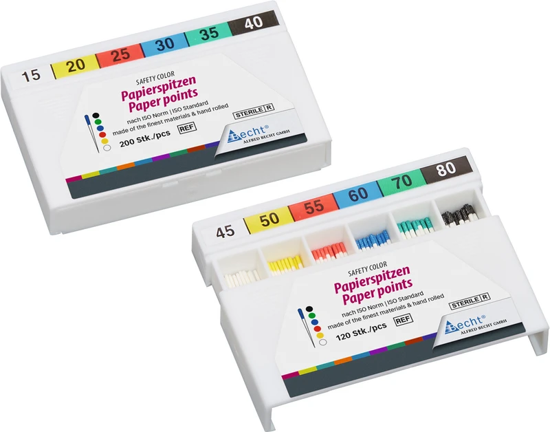 Extrem saugfähig und faserfrei überzeugen die Papierspitzen mit optimaler Festigkeit und glatter Oberfläche. Hergestellt nach ISO-Norm mit 28 mm Länge. Folienversiegelung und Gammasterilisation erfüllen die strengen Anforderungen der Behandlungshygiene.