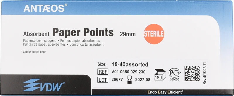 Produktinformationen "Papierspitzen steril Packung 180 Stück Taper.02, ISO 015-040"