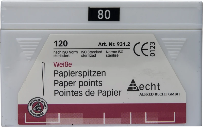 Extrem saugfähig und faserfrei überzeugen die Papierspitzen mit optimaler Festigkeit und glatter Oberfläche. Hergestellt nach ISO-Norm mit 28 mm Länge. Folienversiegelung und Gammasterilisation erfüllen die strengen Anforderungen der Behandlungshygiene.