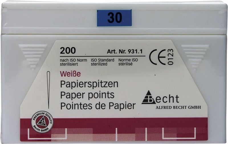 Extrem saugfähig und faserfrei überzeugen die Papierspitzen mit optimaler Festigkeit und glatter Oberfläche. Hergestellt nach ISO-Norm mit 28 mm Länge. Folienversiegelung und Gammasterilisation erfüllen die strengen Anforderungen der Behandlungshygiene.