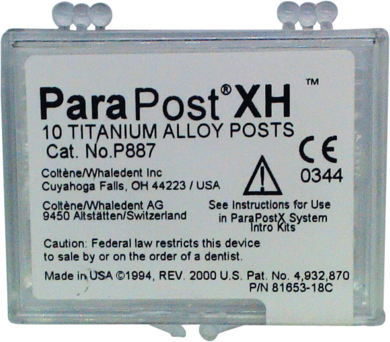 Titan Wurzelstift. Passiv zementierter Stift für den direkten Aufbau bei grazilen, dünnwandigen Wurzeln. Abgerundeter Retentionskopf minimiert Kontraktionsstress im Aufbaumaterial. Ideal für Glasionomer- und Kompositaufbauten.