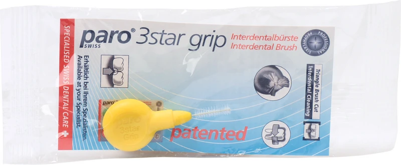 Die paro® ISOLA 3STAR-GRIP Interdentalbürste ist durch ihren 3-Kant-Schnitt optimal der Form des Zahnzwischenraumes angepasst. Damit dringt sie nicht nur leichter in den Interdentalraum ein, sondern reinigt bis zu 20% besser als herkömmliche Bürsten. Der isolierte Draht bildet das dünne Kernstück dieser Interdentalbürste mit rutschfestem Gummigriff. Die sanften Bürstenfilamente werden durch den Draht in einer speziellen Verteilung zusammengehalten. Dank der hochwertigen paro® ISOLA Beschichtung kommt kein Metall mit der Zahnsubstanz, einer Füllung, einer Brücke oder einer Krone in Berührung. Dies verhindert Schmerzen und beugt Beschädigungen und Verletzungen vor.