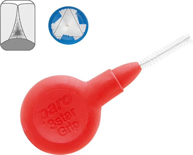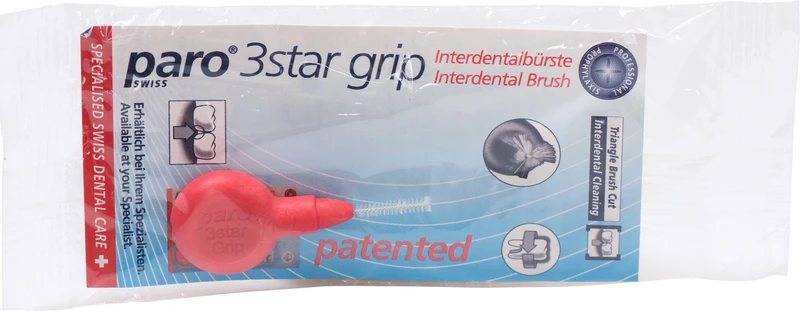 Die paro® ISOLA 3STAR-GRIP Interdentalbürste ist durch ihren 3-Kant-Schnitt optimal der Form des Zahnzwischenraumes angepasst. Damit dringt sie nicht nur leichter in den Interdentalraum ein, sondern reinigt bis zu 20% besser als herkömmliche Bürsten. Der isolierte Draht bildet das dünne Kernstück dieser Interdentalbürste mit rutschfestem Gummigriff. Die sanften Bürstenfilamente werden durch den Draht in einer speziellen Verteilung zusammengehalten. Dank der hochwertigen paro® ISOLA Beschichtung kommt kein Metall mit der Zahnsubstanz, einer Füllung, einer Brücke oder einer Krone in Berührung. Dies verhindert Schmerzen und beugt Beschädigungen und Verletzungen vor.