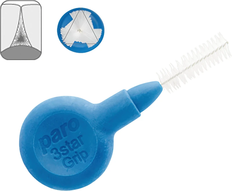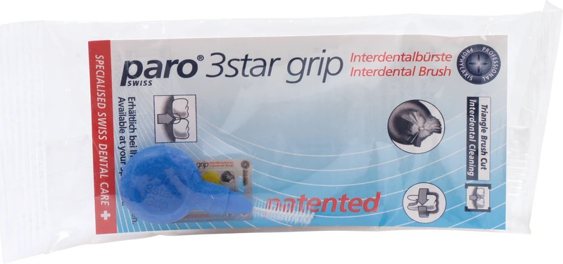 Die paro® ISOLA 3STAR-GRIP Interdentalbürste ist durch ihren 3-Kant-Schnitt optimal der Form des Zahnzwischenraumes angepasst. Damit dringt sie nicht nur leichter in den Interdentalraum ein, sondern reinigt bis zu 20% besser als herkömmliche Bürsten. Der isolierte Draht bildet das dünne Kernstück dieser Interdentalbürste mit rutschfestem Gummigriff. Die sanften Bürstenfilamente werden durch den Draht in einer speziellen Verteilung zusammengehalten. Dank der hochwertigen paro® ISOLA Beschichtung kommt kein Metall mit der Zahnsubstanz, einer Füllung, einer Brücke oder einer Krone in Berührung. Dies verhindert Schmerzen und beugt Beschädigungen und Verletzungen vor.