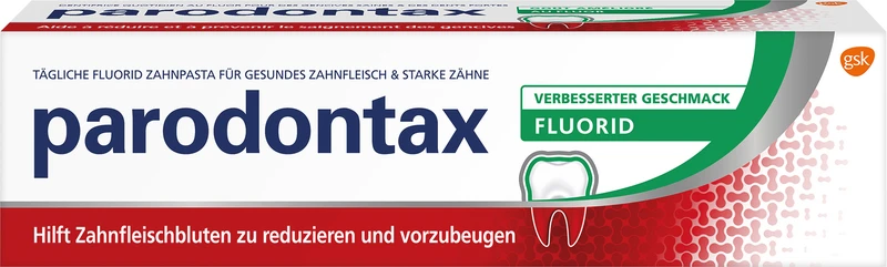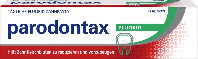 Plaque-Bakterien, die sich am Zahnfleischsaum ablagern, können das Zahnfleisch angreifen. Es kann zu Zahnfleischentzündungen (=Gingivitis) oder noch schlimmer zur Parodontitis kommen. Deshalb ist es besonders wichtig, die Plaque regelmäßig durch Zähneputzen gründlich zu entfernen. Standard-Zahnpasten enthalten meist nur ca. 25 % spezielle Inhaltsstoffe. parodontax mit Fluorid dagegen hat mit 70 % einen viel höheren Anteil. Somit reinigt parodontax mit Fluorid die Zähne gründlich, reduziert schädliche Bakterien und hilft wirksam Zahnfleischproblemen vorzubeugen.