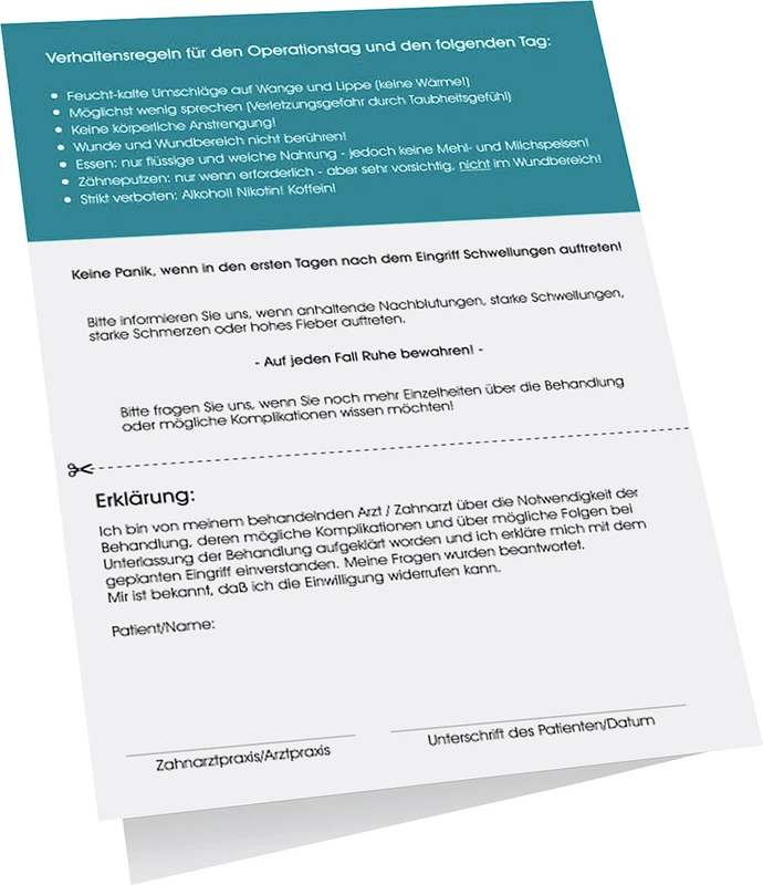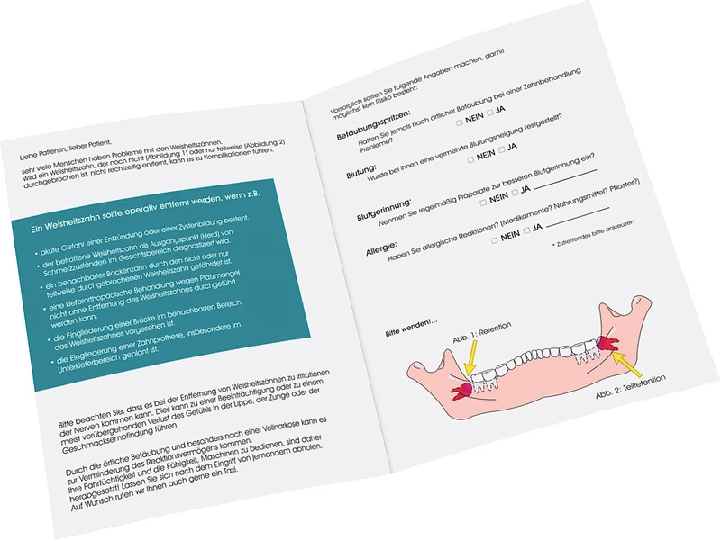 Patienten-Info Packung 50 Stück Entfernung Weisheitszahn