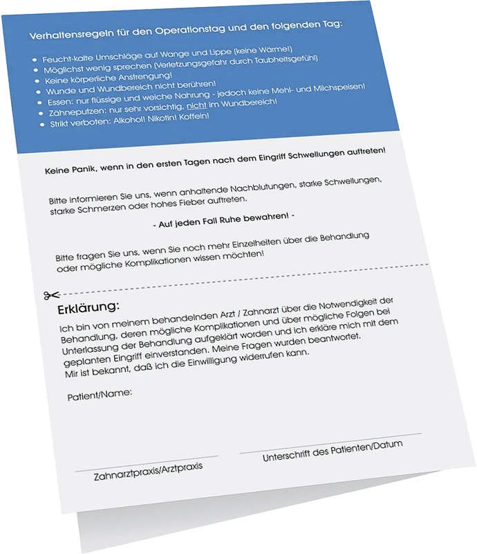 Packung 50 Patienteninformationen Entfernung Wurzelspitze