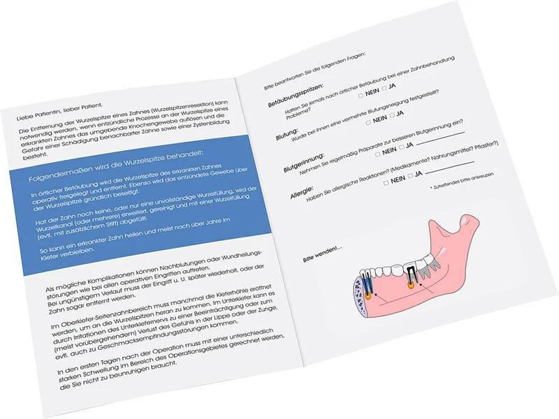 Produktinformationen "Patienten-Info Packung 50 Stück Entfernung Wurzelspitze"