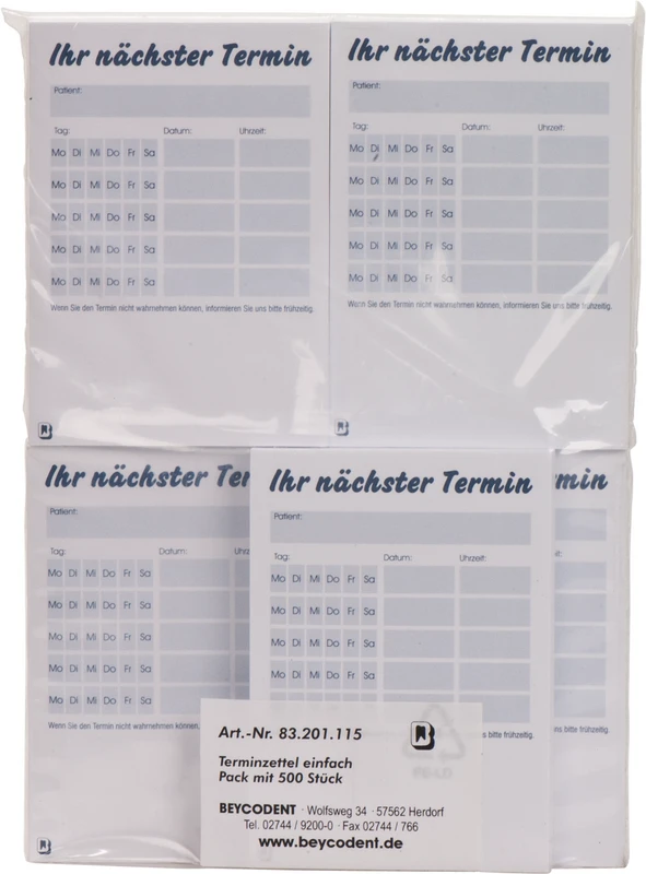Patienten-Terminzettel Packung 5 x 100 Blatt