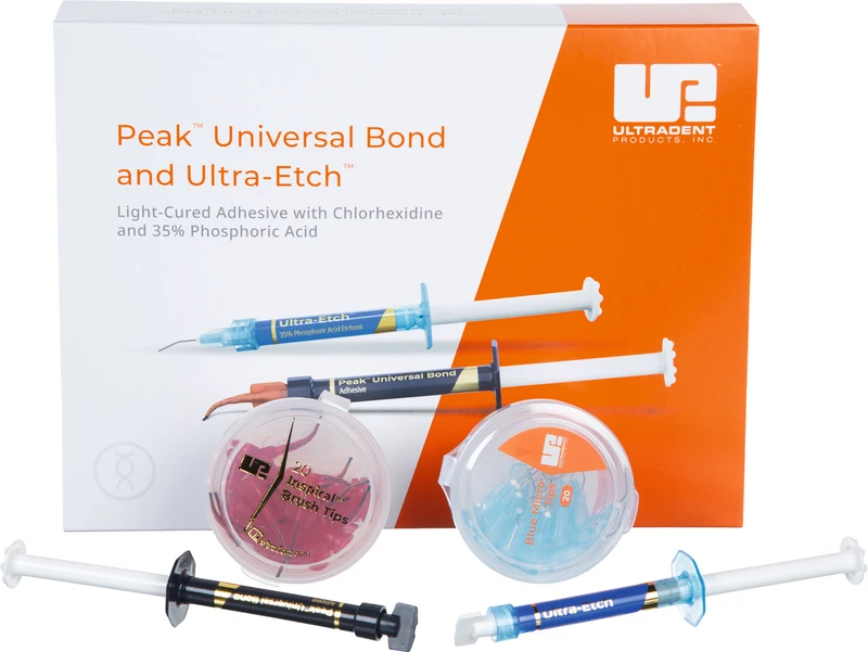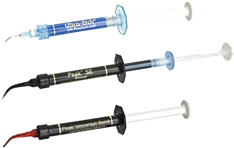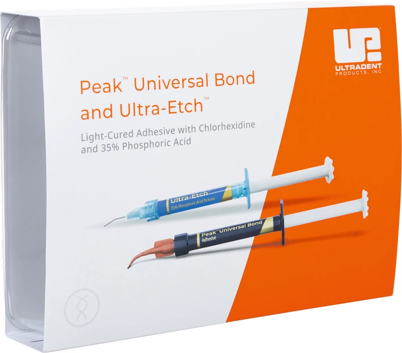 Universelles Bonding Resin, einsetzbar gemäß Total-Etch-Technik (mit vorheriger Anätzung mit Ultra-Etch) oder gemäß Self-Etch-Technik (mit vorherigem Auftrag von Peak SE Primer). Universell bei allen Materialien einsetzbar (Dentin, Schmelz, Keramik, Metall, Komposit, Kunststoff, Zirkonoxid), für direktes und indirektes Bonding, sowie Wurzelstift- und Stumpfaufbauverfahren. Sparsame, gezielte Applikation direkt aus der Spritze oder mit MicroApplicator aus der Flasche. Mit einem Füllergehalt von 7,5 % und einer Mischung individuell synthetisierter Phosphatmonomere wurde seine Viskusität für eine minimale Filmdicke und überlegene Festigkeit optimiert. Keine postoperativen Sensibilitäten. Das Adhäsiv-System ist mit praktisch allen lichthärtenden und chemisch härtenden Kompositen kompatibel.