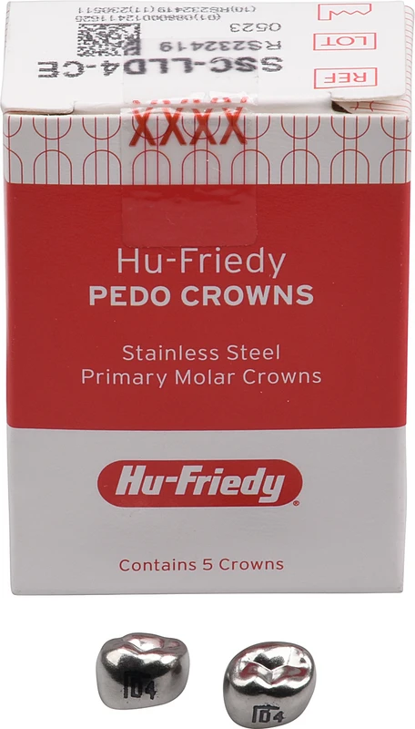 Produktinformationen "PEDO CROWNS Nachfüllpackung 5 Stück Edelstahl, Gr. 4, UK, links, 1. Milchzahn"