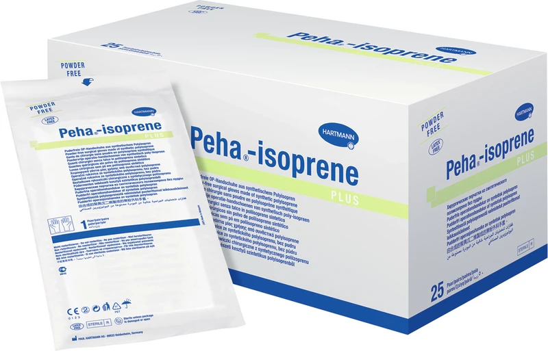 Latex- und puderfreie Einmal-OP-Handschuhe aus besonders dünnem und weichem 100 % synthetischem Polyisopren, durch Polymer-Innenbeschichtung leicht anzuziehen, mikrogeraute Oberfläche, ausgezeichnetes Tastempfinden, hochelastisch und reißfest, ermüdungsfreier Sitz durch vollanatomische Passform. Peha-isoprene® latexfree ist ein Medizinprodukt nach EN 455 und Persönliche Schutzausrüstung nach EN 374. Geeignet für den Einsatz mit Zytostatika und Chemikalien. Empfohlen als Überziehhandschuh in Kombination mit Peha-underglove latexfree. Er erreicht ein AQL Niveau von 0,65.