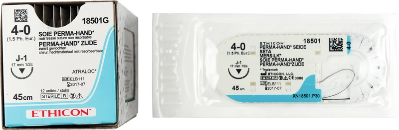 Produktinformationen "PERMA-HAND SEIDE Packung 12 Stück schwarz, 45 cm, J1, 1\2 Kreis, schneidend, 17 mm, USP 4\0"