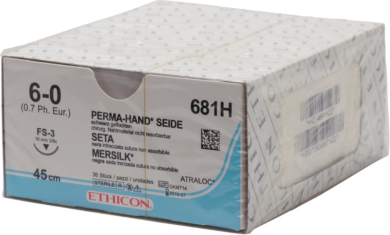 PERMA-HAND SEIDE Packung 36 Stück schwarz, 45 cm, FS3, 3\8 Kreis, schneidend, 16 mm, USP 6\0