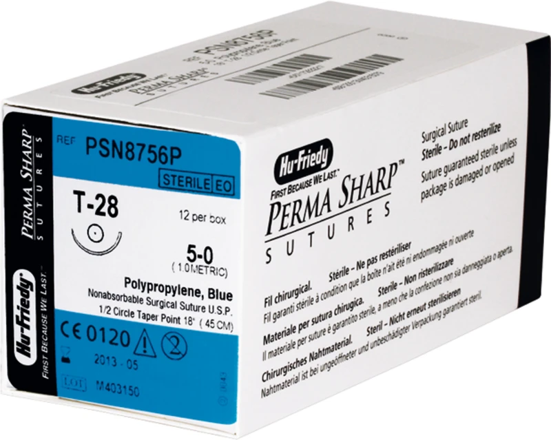 Perma Sharp Polypropylen Packung 12 Stück blau, 45 cm, T-28, 1\2 Kreis, Rundkörper, 17,5 mm, USP 5\0