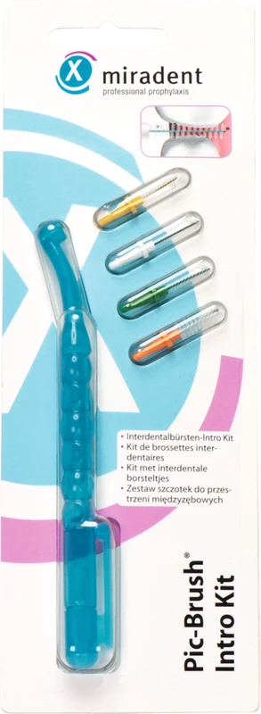 Produktinformationen "Pic-Brush® Introkit 1 Stück blau transparent, 4 Bürsten (weiß, grün, blau, orange)"