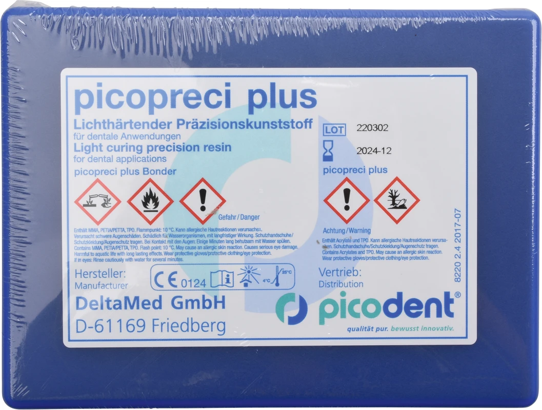 picopreci plus ist ein gelförmiger, lichthärtender Präzisionskunststoff für den Gebrauch in der Praxis und im Labor. Das Gel ermöglicht schnelles Arbeiten ohne Vorwälle oder lange Polymerisationszeiten. Es ist ideal für feine Korrekturen in Kunststoff, Verschließen von Mikrospalten, schnelles Wiederbefestigen von Zähnen auf dem Modell, Fertigung von Sätteln, Randgestaltung bei Implantaten, punktgenaues Arbeiten direkt im Mund z. B. Verschließen von Schraubenkanälen u. v. a. m.