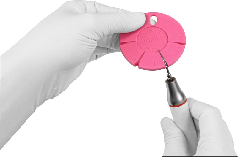 Mit diesem Instrumentenprüfgerät kann Behandlungseffizienz und Patientenkomfort bestmöglich gewährleistet werden. Wenn die Spitze des verwendeten PIEZON® Instrumentes die auf dem Check Tool angegebene Markierung erreicht oder sogar kürzer ist, ist es Zeit, das Instrument zu ersetzen.