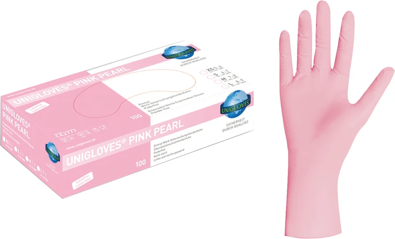 Die Nitrilhandschuhe aus der UNIGLOVES® PEARL LINE überzeugen durch ihre hohe Qualität, die exzellente Passform und das ausgesprochen gute Tastempfinden. Sie begeistern durch ihre brillanten Farben, die Ihnen und Ihrer Praxis den individuellen Ausdruck verleihen.