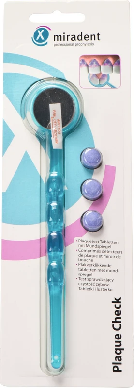 Set Mundspiegel blau transparent, 3 Plaquetest-Tabletten