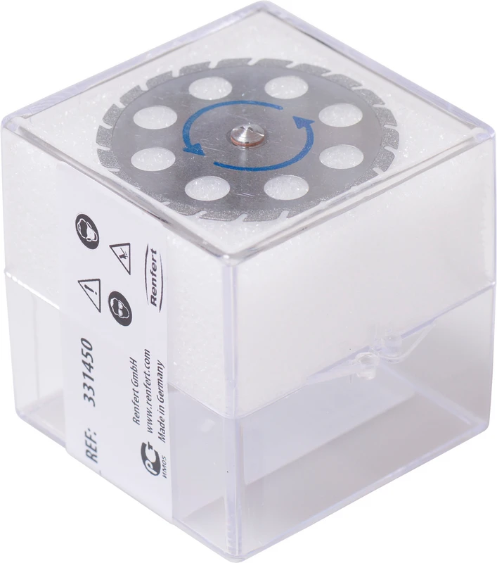 Galvanisch diamantbeschichtete Trennscheibe zur Trennung von Sägestümpfen. Ermöglicht schnelle und gerade Schnitte durch den Zahnkranz. Dank des stabilen Trägermaterials zeichnen sich die Trennscheiben durch optimale Laufruhe aus. Perforationen in den Scheiben sorgen für Transparenz beim Schneiden. Max. Drehzahl 10.000 U/min.