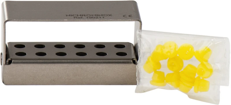 Stück Bohrerständer für 12 Instrumente (2 Reihen a 6 Löcher), gelb, 6,3 x 2,5 x 3 cm