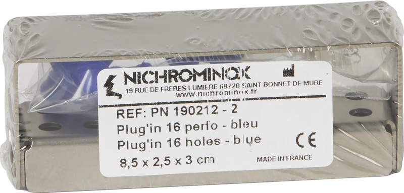 Produktinformationen "PLUG IN Stück für 16 Instrumente (2 Reihen a 8 Löcher), blau, 8,5 x 2,5 x 3 cm"