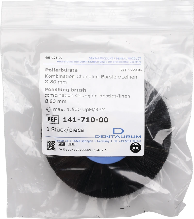 - 141-710 - Chungking-Borsten/Leinen - Max. Drehzahl - 1.500 U/min., Einsatzbereich: KFO, Kronen und Brücken, Kunststoff-Prothetik