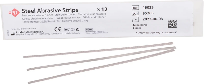 Die Polierstreifen bestehen aus Stahl sind sterilisierbar oder desinfizierbar. Resistent und biegsam, einseitig (1S) oder zweiseitig (2S) beschichtet.