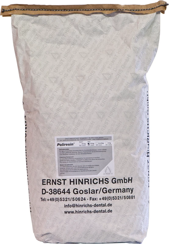 Speziell für die Bearbeitung von Kunststoffprothesen entwickeltes, geruchsneutrales Poliermittel. Gleiche Verarbeitung wie mit Bimssteinpulver, jedoch wirkt POLIRESIN® extrem abrasiv glättend und hat eine um 30 % höhere Standzeit. Dank der einzigartigen, kristallinen Struktur wird die Kunststoffoberfläche schonend poliert und der Zeitaufwand bis zur anschließenden Hochglanzpolitur deutlich reduziert. Zum Anrühren wird eine Bimsdesinfektion empfohlen.