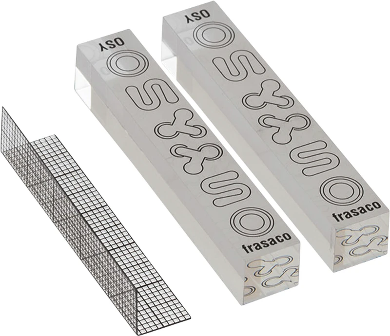 A-PT - 2 mit einfachen geometrischen Formen "OSY" bedruckte glasklar-transparente Kunststoffstäbe für Präparationsübungen, Millimeterfolie zur dreidimensionalen Darstellungskontrolle.