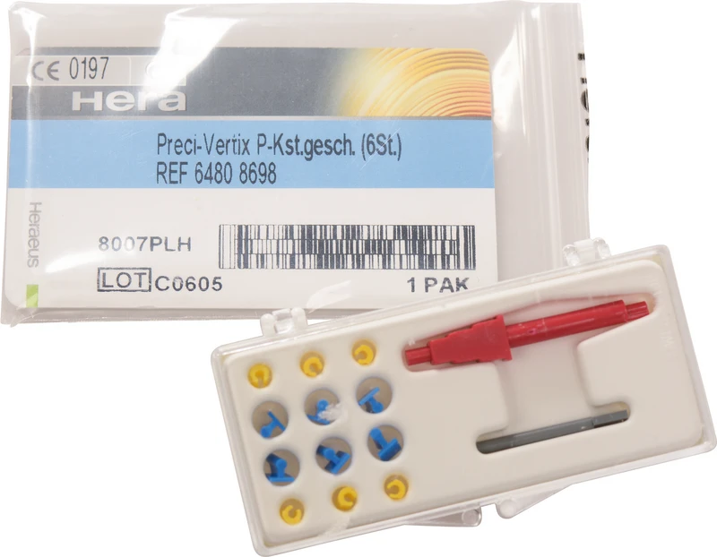 Das Preci-Vertix® sowie Preci-Vertix® P ist ein aus Kunststoffteilen bestehendes Stabgeschiebe und dient zur Verankerung von herausnehmbaren Modellgussprothesen.