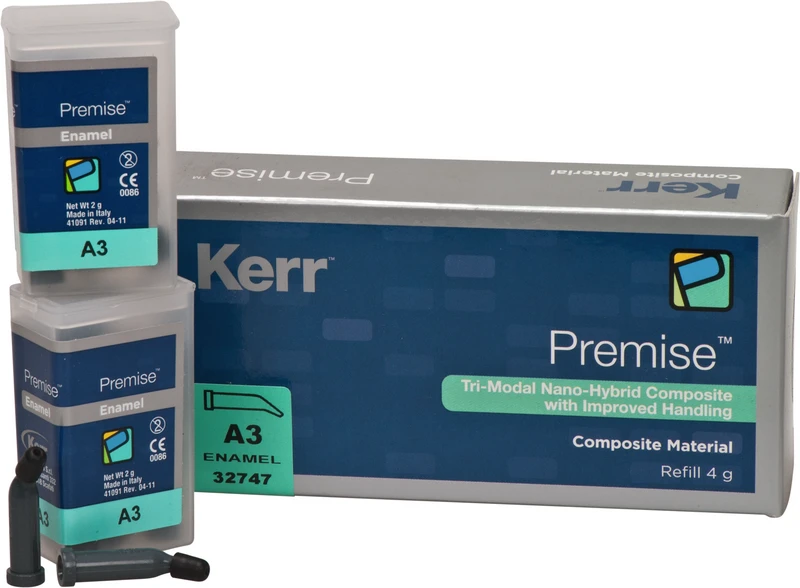 PREMISE ist ein universelles, einfach zu verarbeitendes Trimodales Nano-Kompositmaterial. Es enthält drei verschiedene Füllstoffe, 0,02 µm Nanofüller, 0,4 µm Bariumglasfüller und vorpolymerisierte Füller (PPF), die eine minimale Polymerisationsschrumpfung, einen dauerhaften Glanz und eine optimale Verarbeitung und Dauerhaftigkeit gewährleisten. PREMISE ist belastbar im Molaren- und Prämolarenbereich und bietet eine natürliche Ästhetik im Frontzahnbereicht.