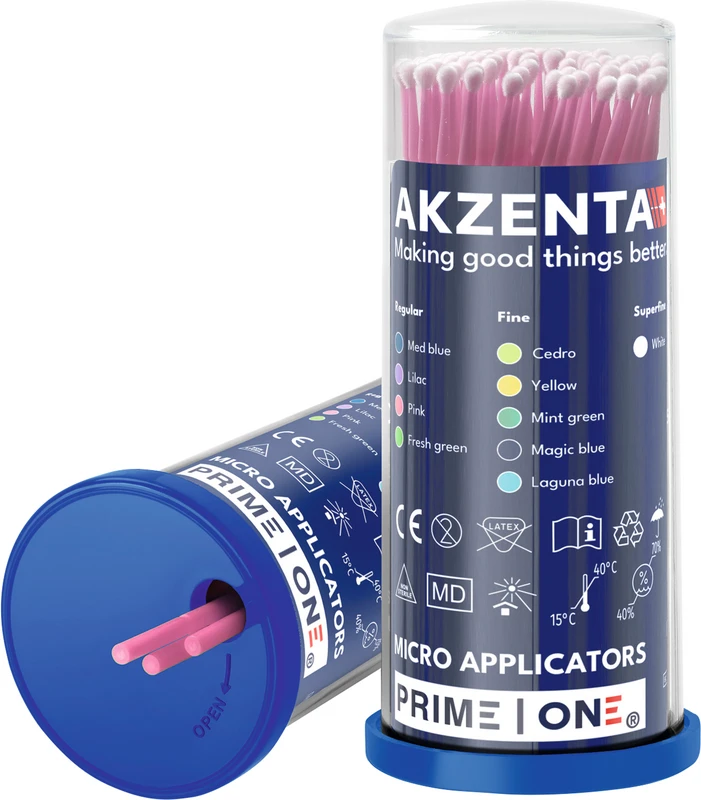 PRIME ONE Mikro-Applikatoren sind hochqualitative Mikroapplikatoren für die Auftragung von Flüssigkeiten, Pasten oder Gels im Zahnarztgebrauch.