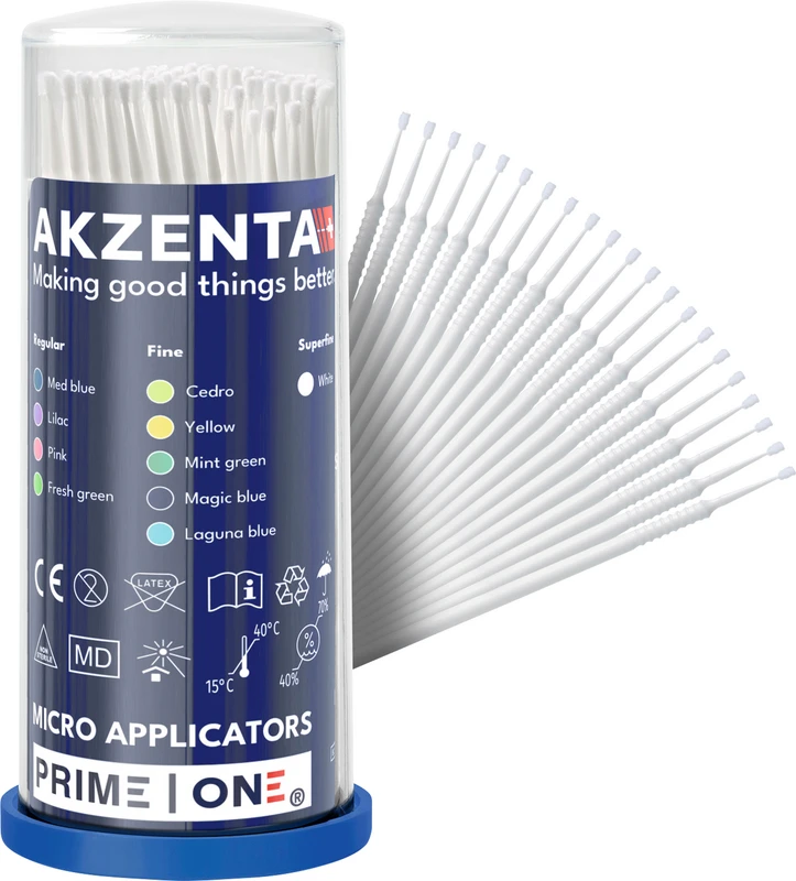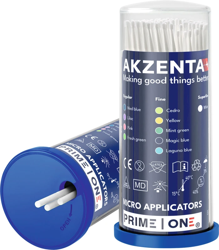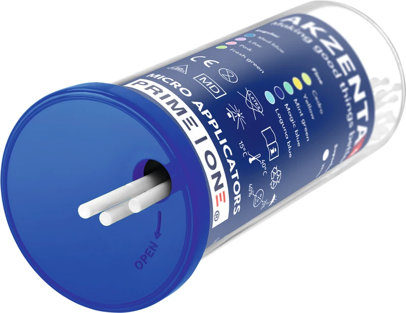 PRIME ONE Mikro-Applikatoren sind hochqualitative Mikroapplikatoren für die Auftragung von Flüssigkeiten, Pasten oder Gels im Zahnarztgebrauch.