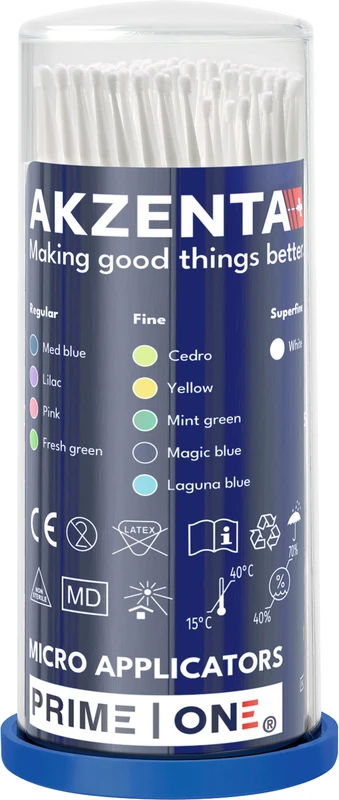 PRIME ONE Mikro-Applikatoren sind in drei verschiedenen Größen erhältlich: Regular, fein und superfein.