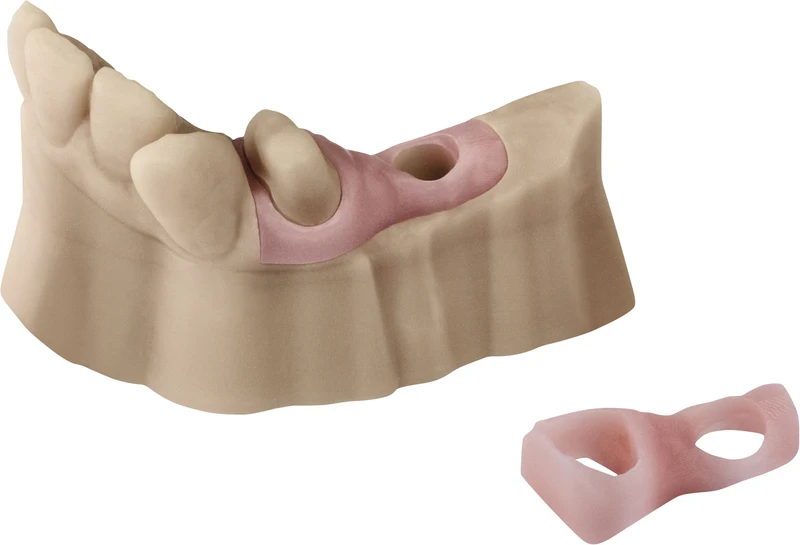 Das Material kann für die Herstellung von Zahnfleischmasken verwendet werden, um die bewegliche Mundschleimhaut zu simulieren. Gingiva Masken können in einem hochautomatisierten Prozess in Primeprint und Primeprint PPU hergestellt werden.