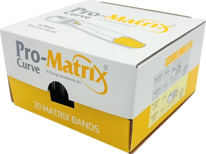 Pro-Matrix® Matrizenband Packung 20 Stück gebogen schmal, 4,5 mm, gelb