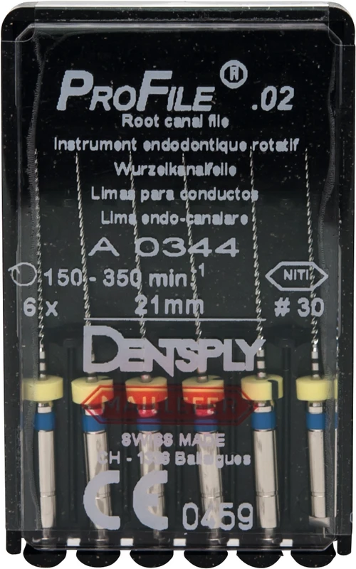 ProFile® ermöglicht eine effiziente maschinelle Aufbereitung und Ausformung des Wurzelkanals. Die vier ProFile®-Instrumententypen wurden speziell für die Crown-Down-Technik entwickelt. Eine konstante Drehzahl im Bereich 150350 U/min. ist erforderlich. Drehmomentbegrenzung wird empfohlen.