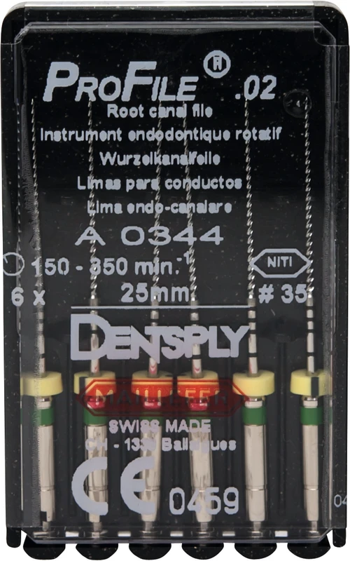 ProFile® ermöglicht eine effiziente maschinelle Aufbereitung und Ausformung des Wurzelkanals. Die vier ProFile®-Instrumententypen wurden speziell für die Crown-Down-Technik entwickelt. Eine konstante Drehzahl im Bereich 150350 U/min. ist erforderlich. Drehmomentbegrenzung wird empfohlen.