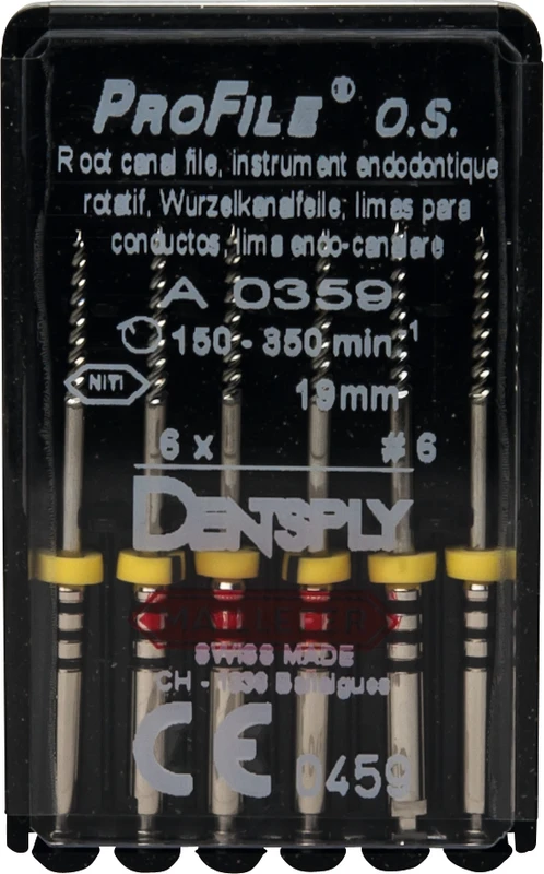 ProFile® ermöglicht eine effiziente maschinelle Aufbereitung und Ausformung des Wurzelkanals. Die vier ProFile®-Instrumententypen wurden speziell für die Crown-Down-Technik entwickelt. Eine konstante Drehzahl im Bereich 150350 U/min. ist erforderlich. Drehmomentbegrenzung wird empfohlen.