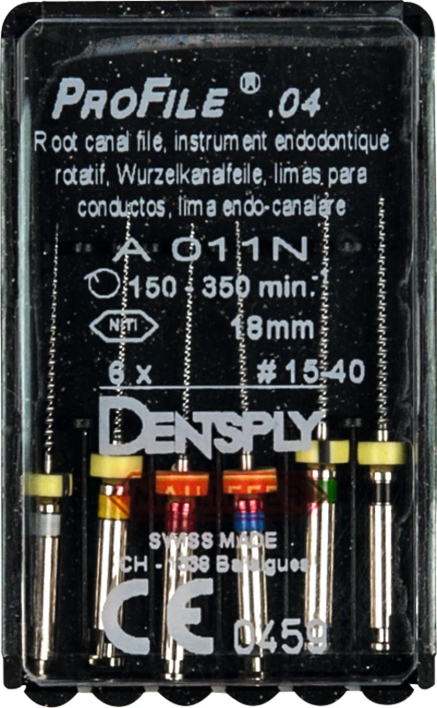 ProFile® ermöglicht eine effiziente maschinelle Aufbereitung und Ausformung des Wurzelkanals. Die vier ProFile®-Instrumententypen wurden speziell für die Crown-Down-Technik entwickelt. Eine konstante Drehzahl im Bereich 150350 U/min. ist erforderlich. Drehmomentbegrenzung wird empfohlen.