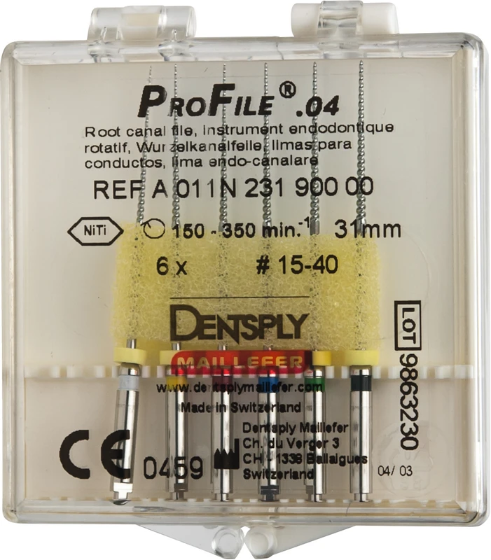 ProFile® ermöglicht eine effiziente maschinelle Aufbereitung und Ausformung des Wurzelkanals. Die vier ProFile®-Instrumententypen wurden speziell für die Crown-Down-Technik entwickelt. Eine konstante Drehzahl im Bereich 150350 U/min. ist erforderlich. Drehmomentbegrenzung wird empfohlen.